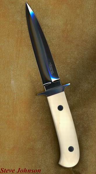 Coltello a lama fissa di Ron Lake Daghetta con guancette in avorio, |