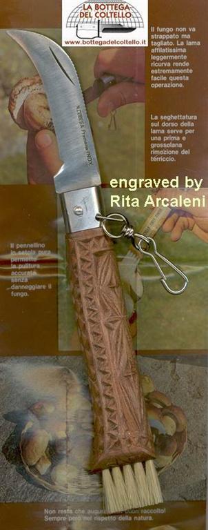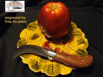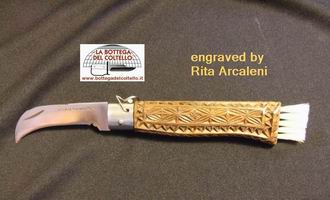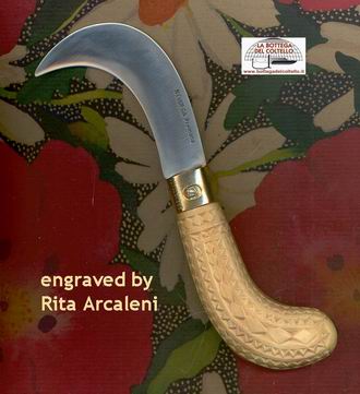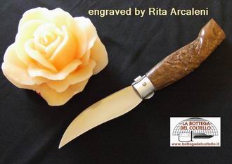 coltello di forma "bergamasco" prodotto da Codega di  Premana,  impugnatura elaborata a mano da Rita A.